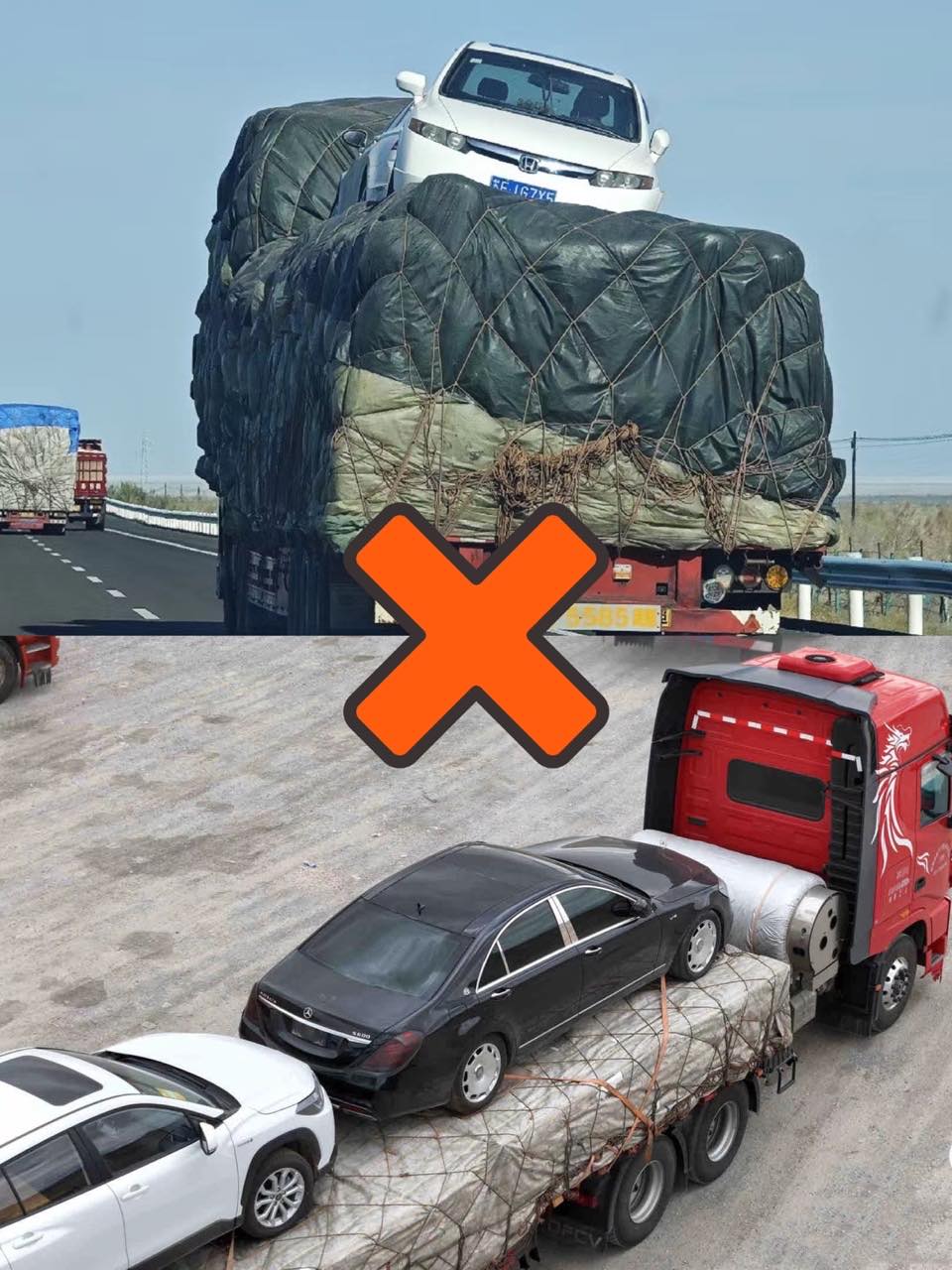 首先,汽車綁在貨物上,車輛很難固定,輕則剮蹭,重則掉落