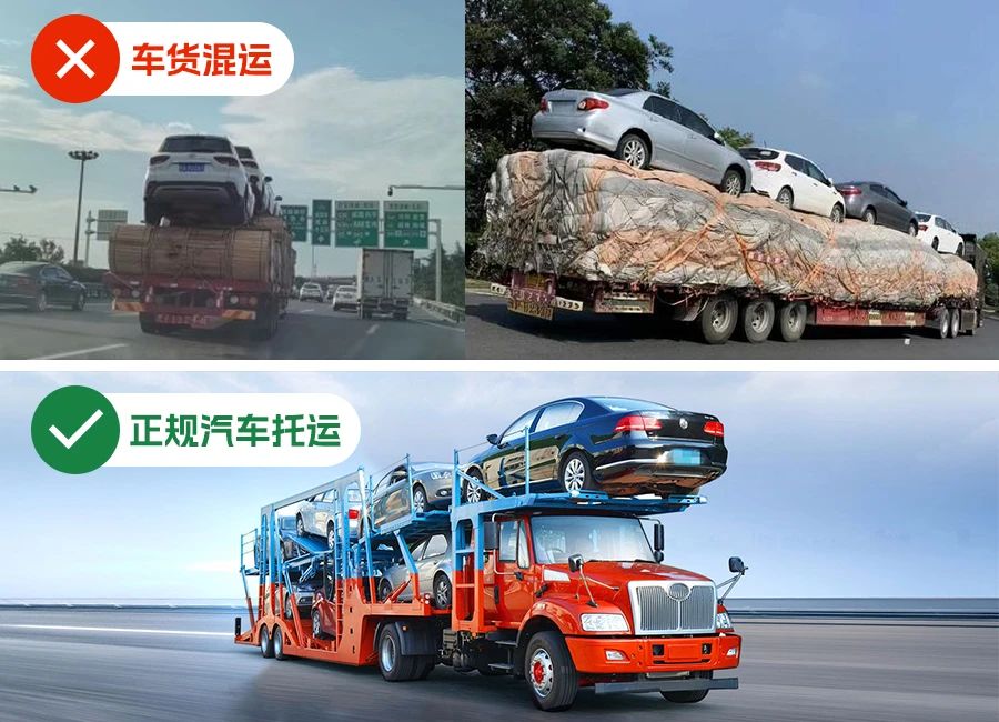 這種就是用普通貨車運輸汽車,一般都是車貨混裝。下面運貨,上面運車,車輛根本固定不牢,很容易出現車損,輕則剮蹭,重則掉落。這種不合規的方式,也沒辦法購買運輸保險,出現問題根本沒法理賠。